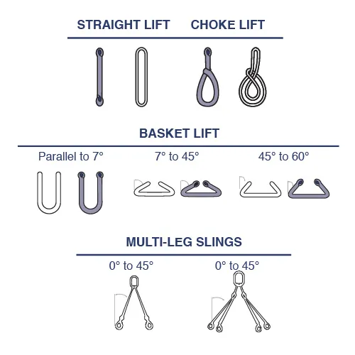 • 為增加穩定性和摩擦力,可採用「雙環繞籃吊」(Double Wrap Basket Hitch),即吊帶在負載物下方環繞兩圈。